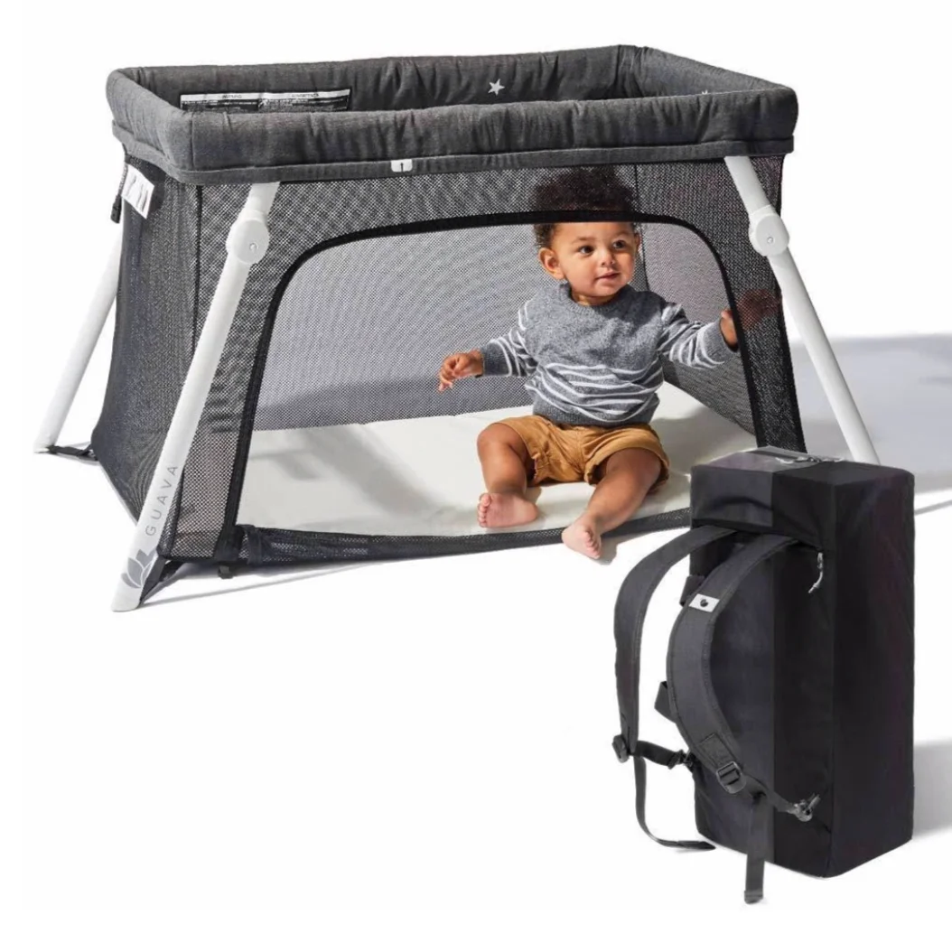 This crib is at the top of my list for must haves. It is small and rests on the floor, and fits in most hotel room corners and nooks. You can wear it as a backpack and it is lightweight making it easy to take with you on the road.